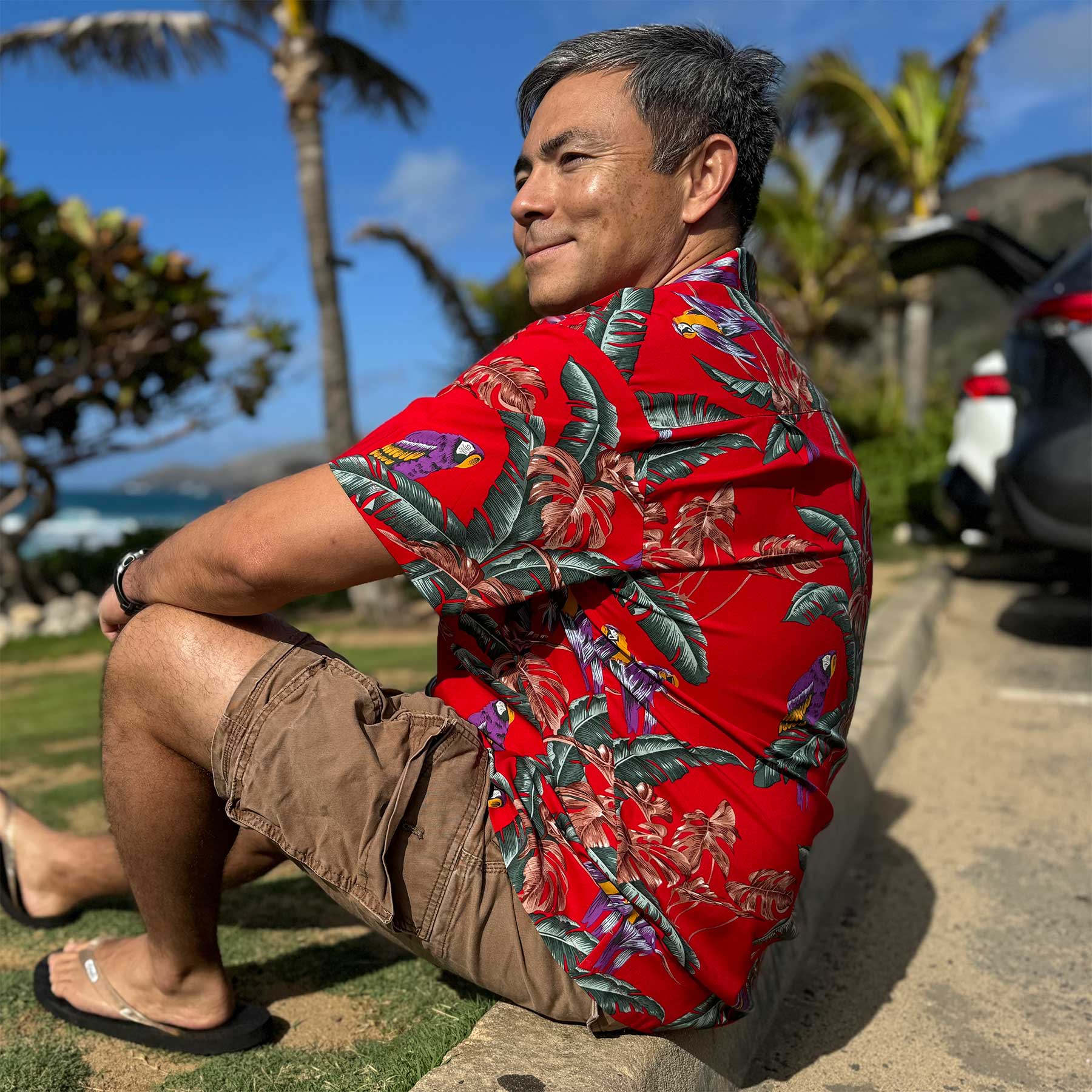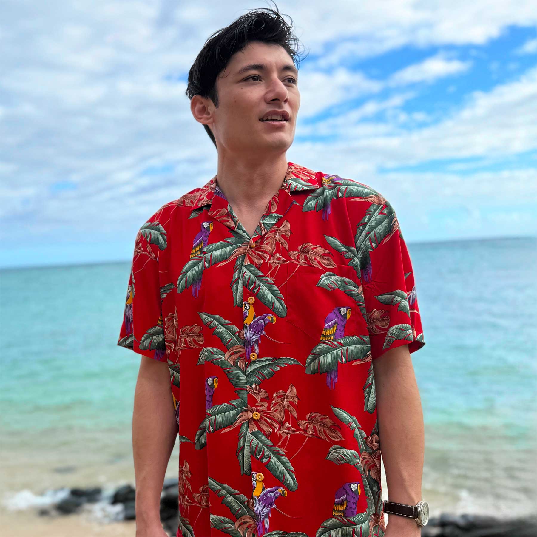 This cotton version of the popular rayon Magnum PI shirt is available in sizes S-4XL. In the 1980s, the Jungle Bird red shirt which Tom Selleck wore on Magnum PI was available in both cotton and rayon. Since 2007, it has only been available in rayon. So if you ever wanted a cotton version of this shirt, this is your chance!