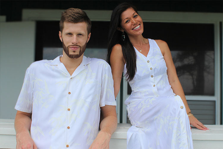 Looking for an alternative to traditional church wedding ceremonies? Beach weddings and Hawaiian weddings are growing in popularity and are a festive way to kick off the next chapter of your life. After all, you're a match made in heaven - why not get married in paradise? AlohaFunWear.com can help put the fun into your special day with our selection of Hawaiian-style wedding dresses and shirts for everybody in your wedding party. These white-on-white Hawaiian print clothes offer the elegance a ceremony deserves in a look that's less formal and stuffy. And better yet, our dresses and shirts are affordable so you have money left over for a fabulous beach honeymoon!