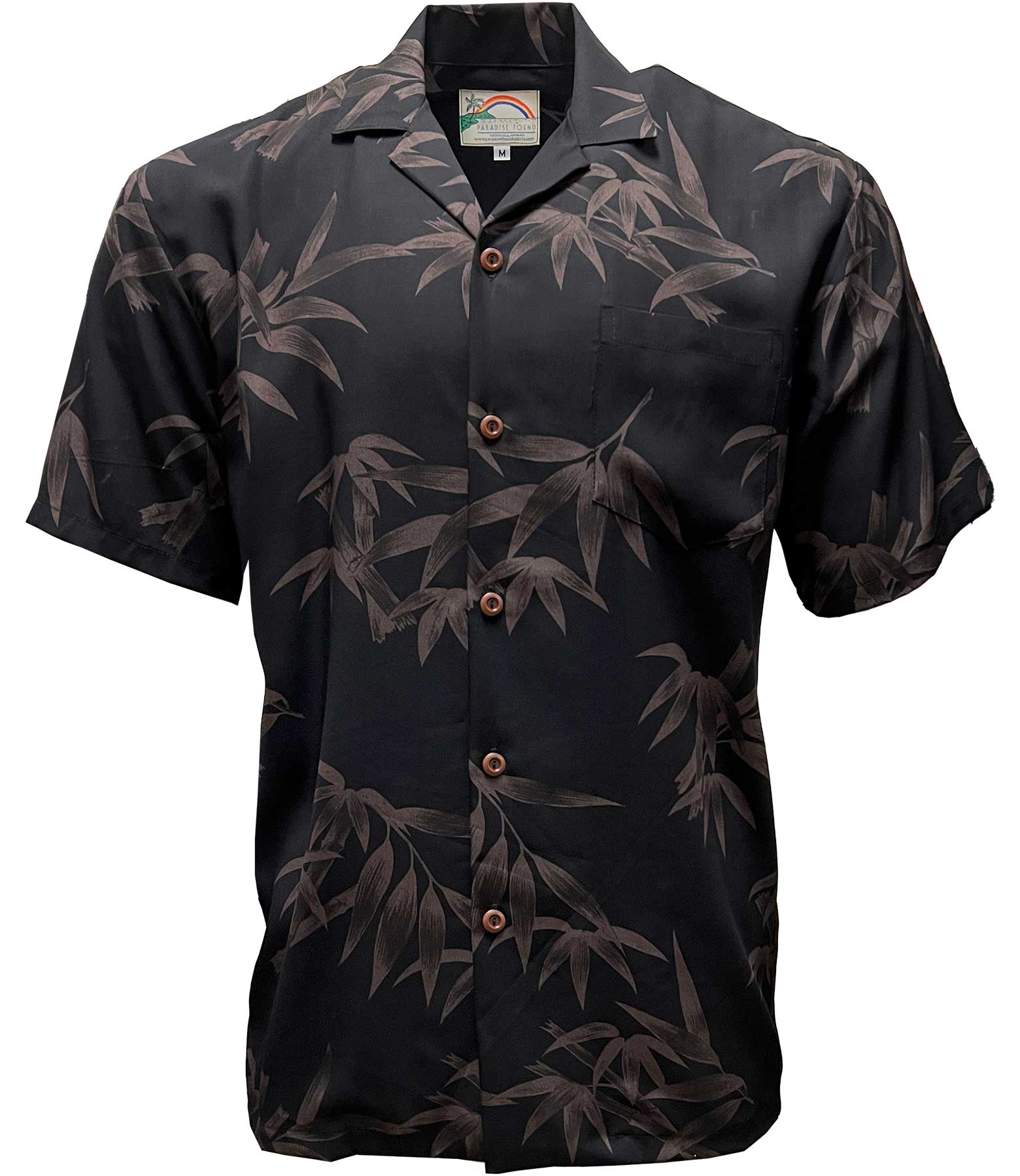 This tone-on-tone black Bamboo Garden print is made of 100% super soft rayon and comes with a matched pocket and real wood buttons.