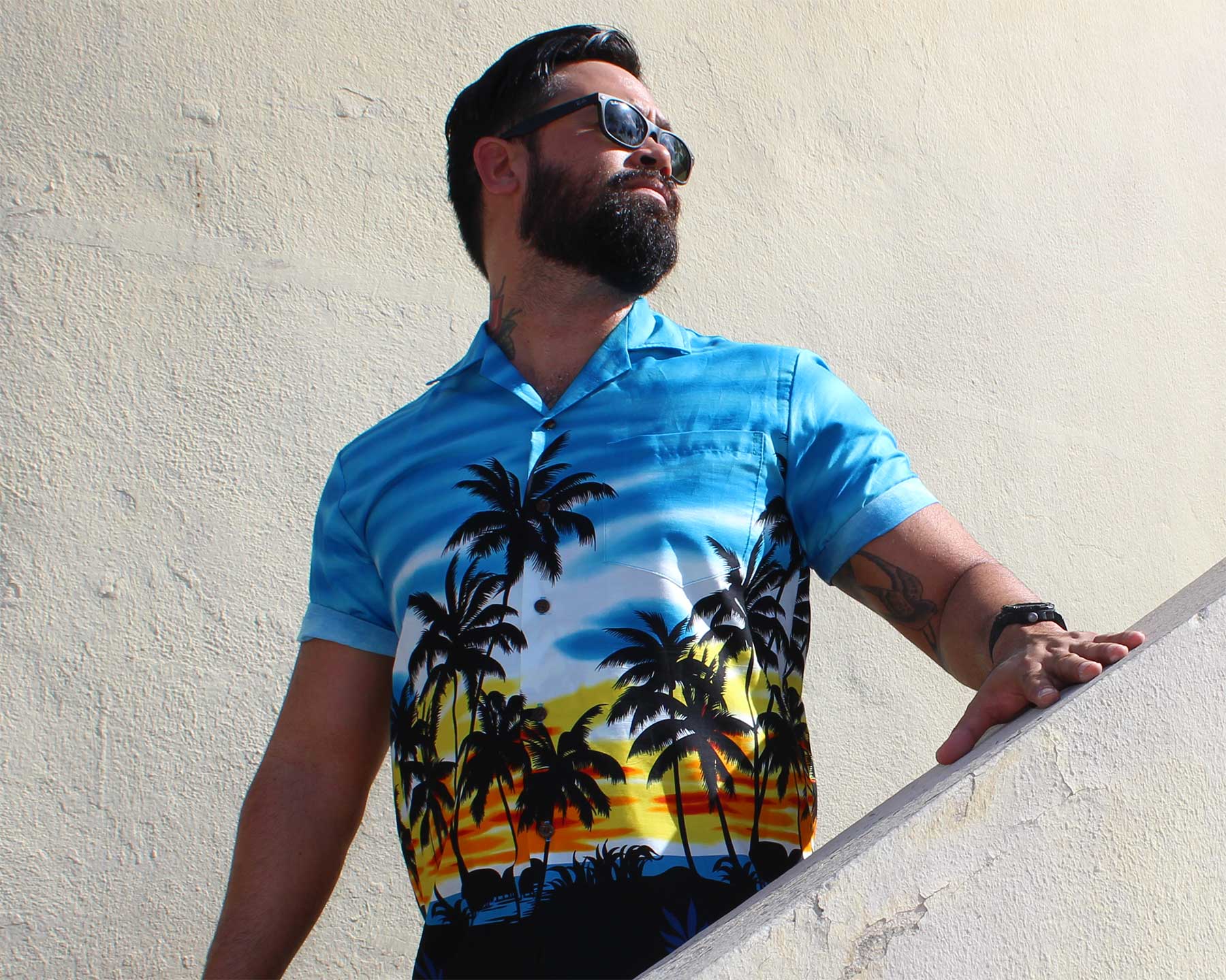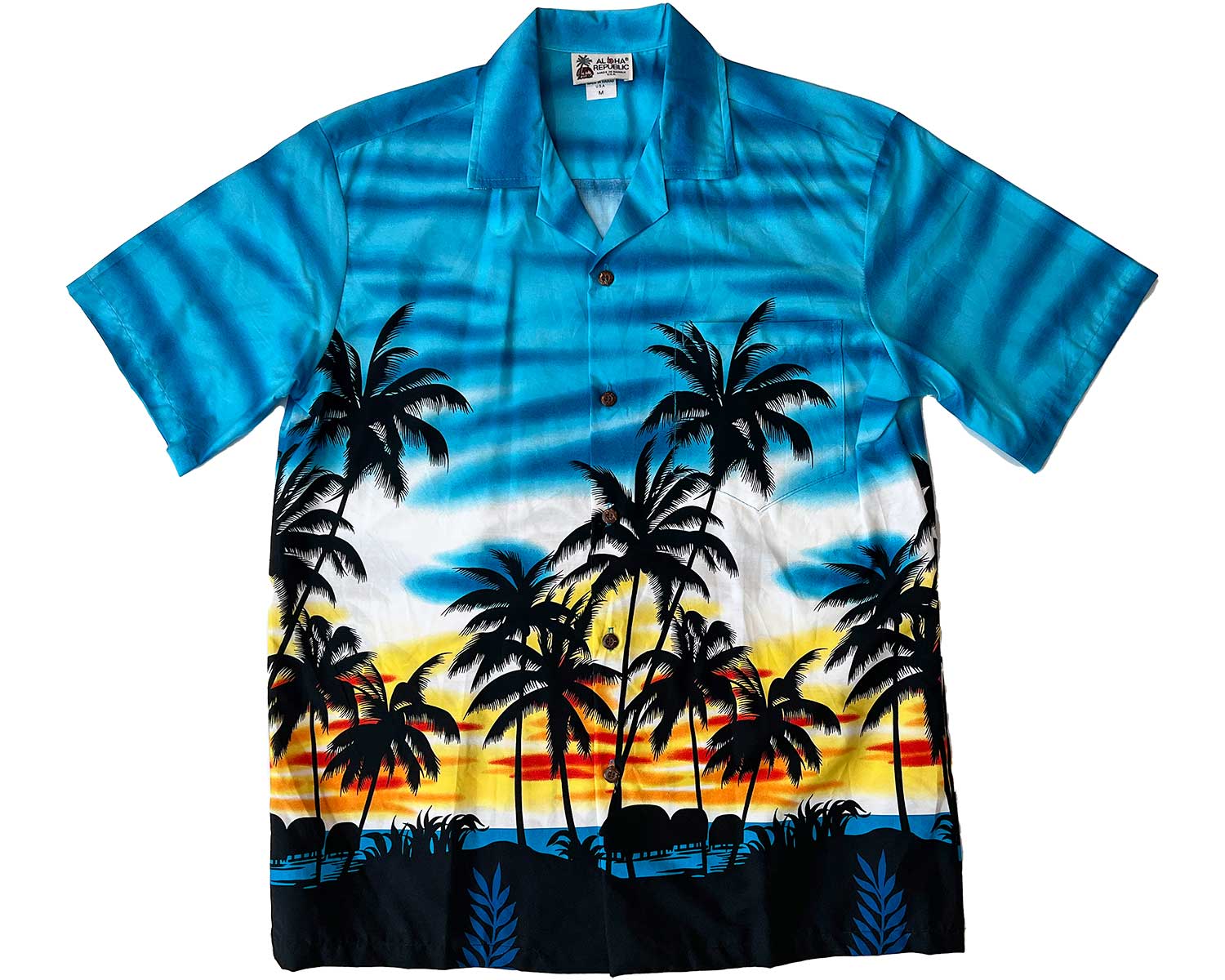 From time to time the volcanic haze coming from Hawaii Island (aka Big Island) leads to sunets with amazing colors. This blue sunset Hawaiian shirt is made of 100% cotton and has a matched pocket and real coconut buttons.